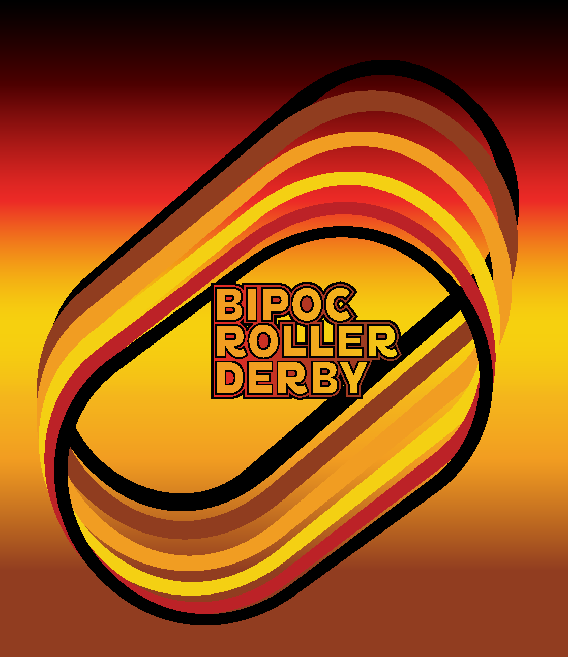 Built from the precise geometry of a regulation flat track, the mark translates sport structure into bold form—designed to signal power at a glance.