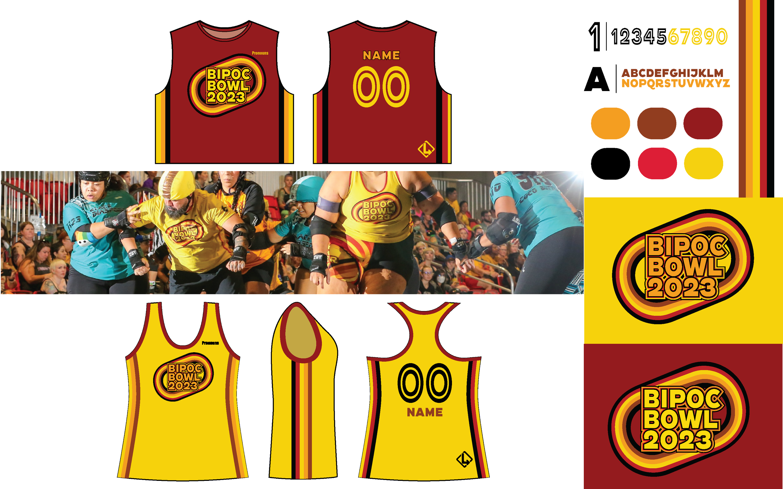 For BIPOC Bowl 2022—the team’s first tournament—I evolved the visual system into their inaugural competition uniforms.
